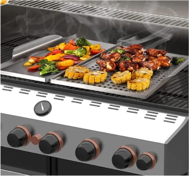 Stainless Steel Griddle Grill Pan 2-in-1 Stove Top Grill Plate Grilled Pan Vegetable Plate Grill Barbecue Trays Outdoor Grilling