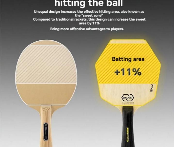 1. Hexagonal rackets can provide a larger contact area when hitting the ball, which makes the hitting more stable and also allows for better control of the ball’s rotation.