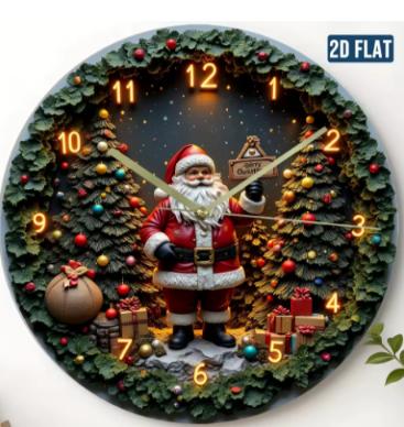 Round Wooden Wall Clock. Material of the wall clock: wooden. There are two sizes available, 8 inches and 12 inches. The display is 2D Flat, not 3D Flat, Battery Operated.